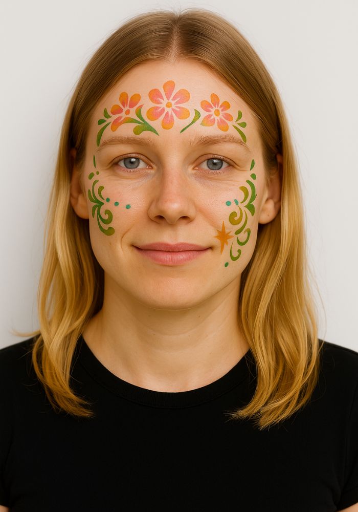 Een schmink sjabloon is een mal waarmee je gemakkelijk vormen, patronen of figuren op de huid kunt aanbrengen met schmink, glitter of bodypaint. Ideaal voor wie snel een strak en creatief resultaat wil, zonder artistieke stress!