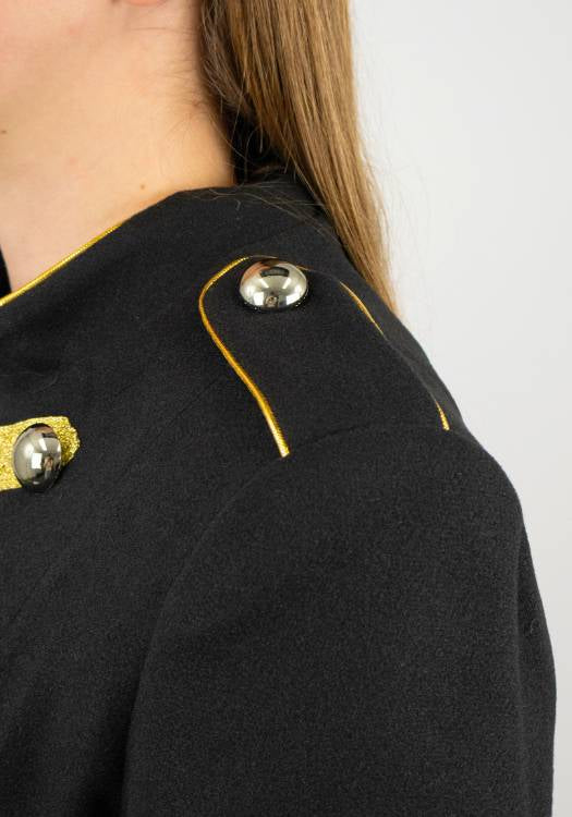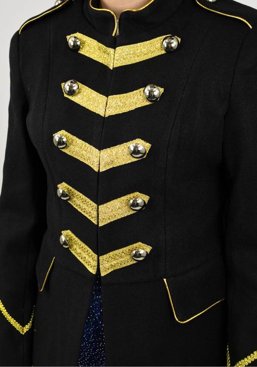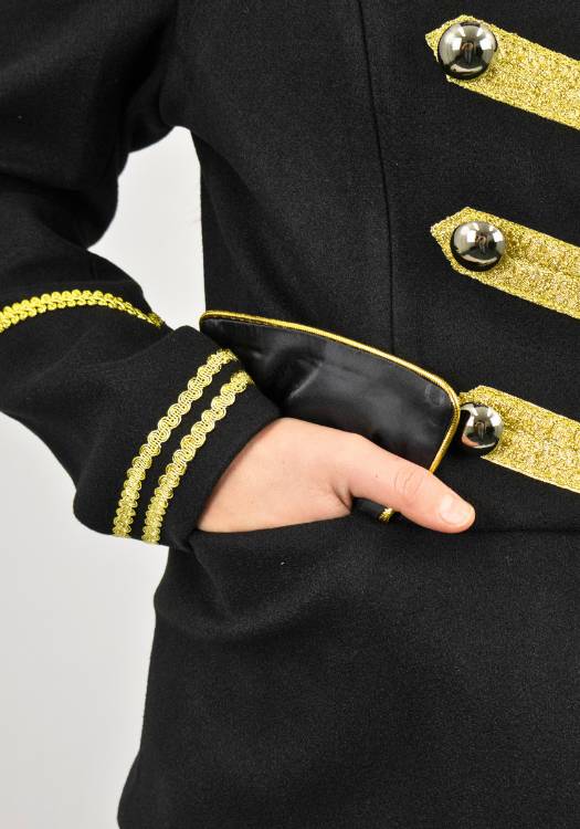 Deze carnavalsjas is voorzien van een handig en elegant haaksluitingssysteem, waardoor je de jas moeiteloos kunt openen en sluiten — en het ziet er ook nog eens super strak uit.