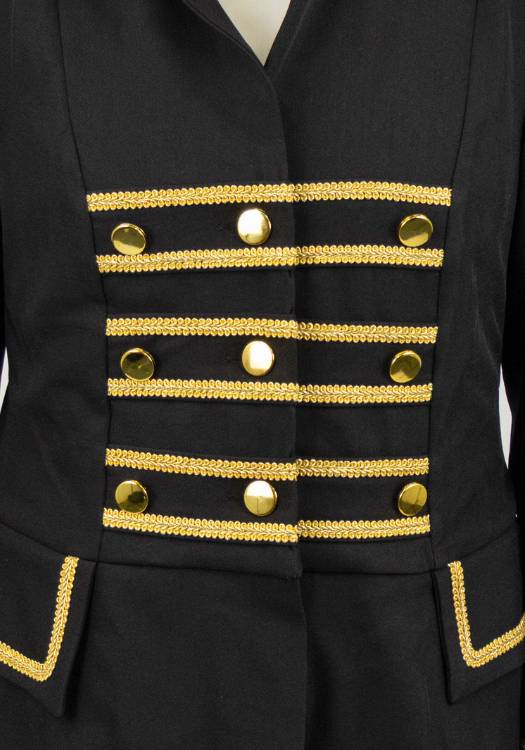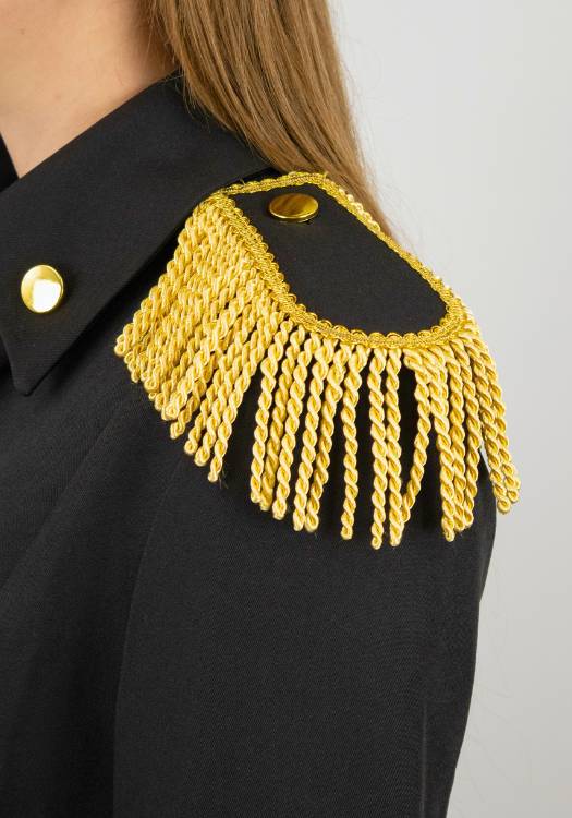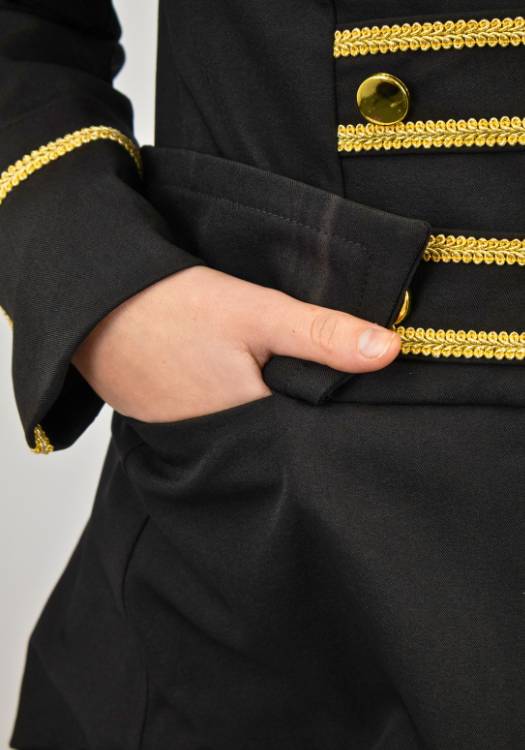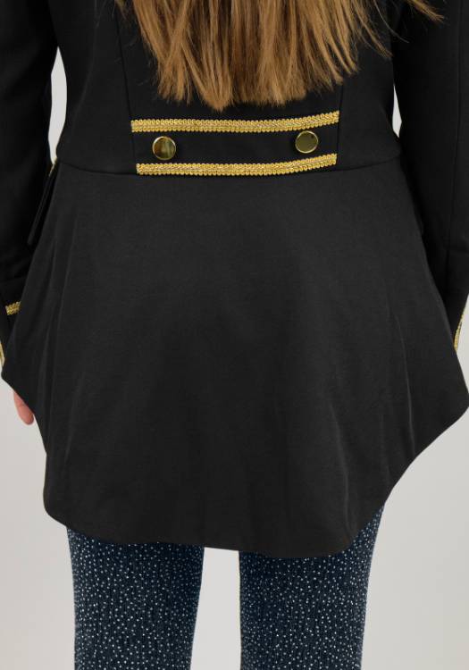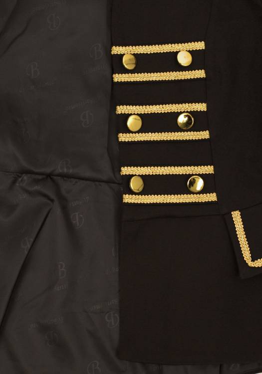 Op de schouders zitten twee epauletten die de jas een echte carnavalslook geven.