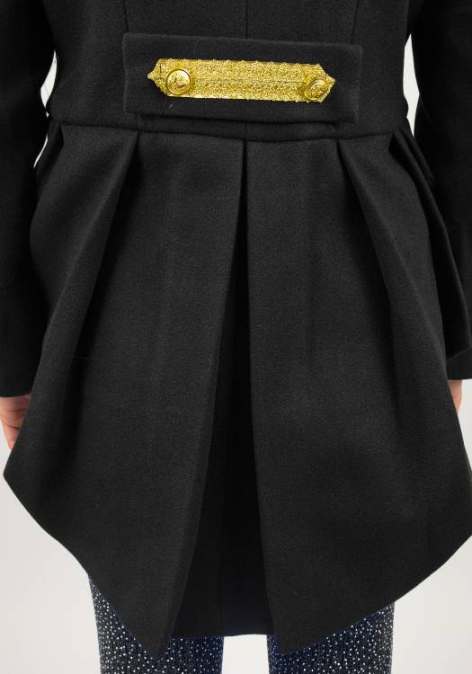 De jas heeft aan de achterkant een slip die iets over de heupen valt, wat zorgt voor een mooie, elegante pasvorm.