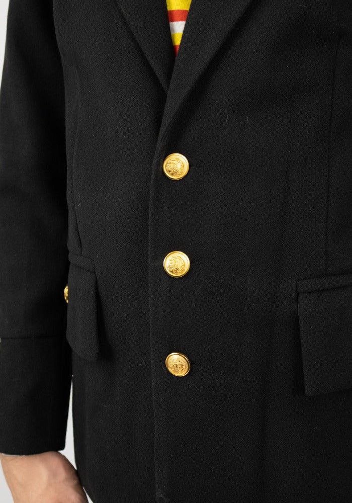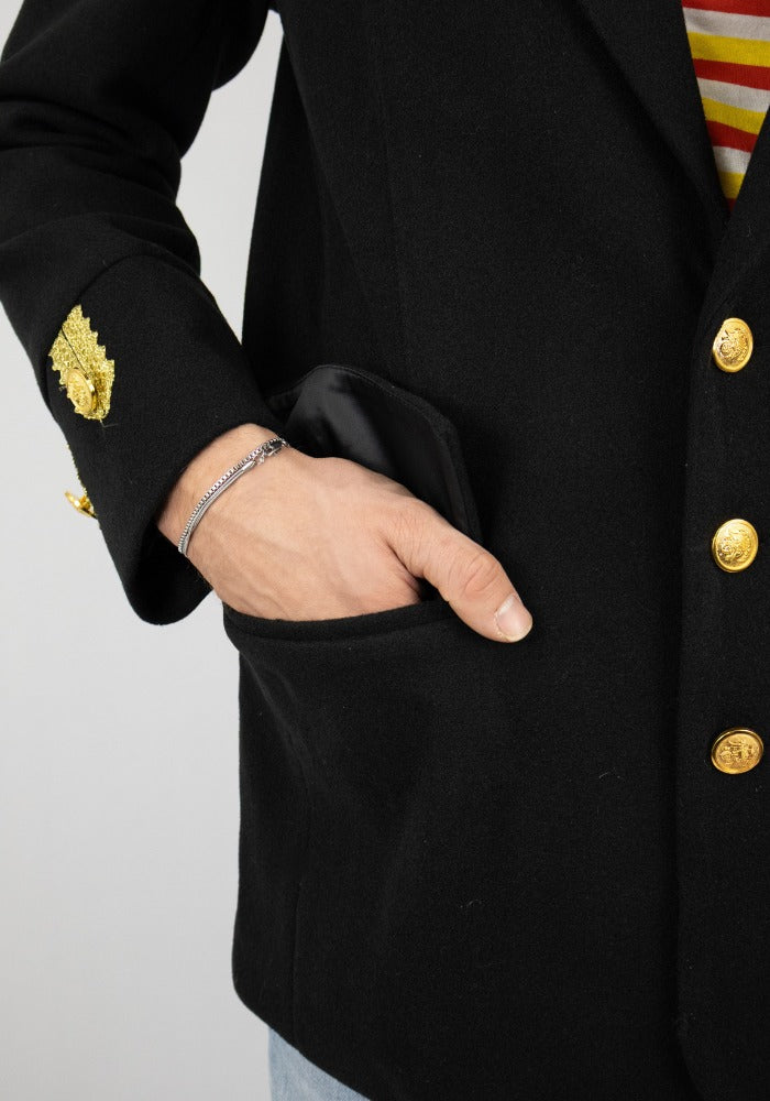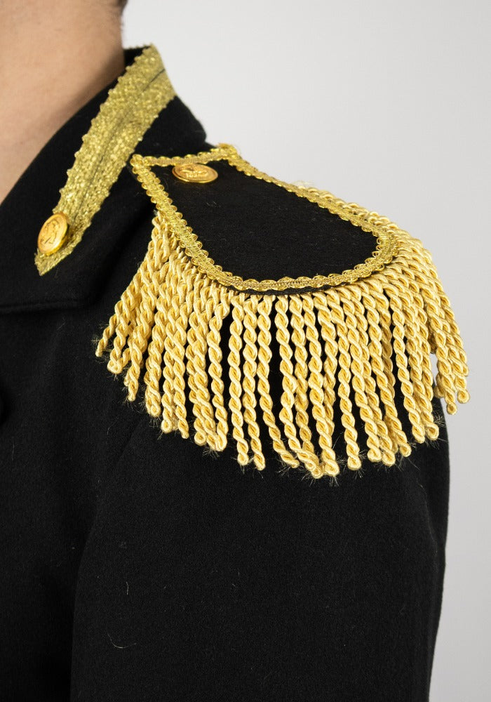 Op de schouders zitten twee epauletten die de jas een echte carnavalslook geven.